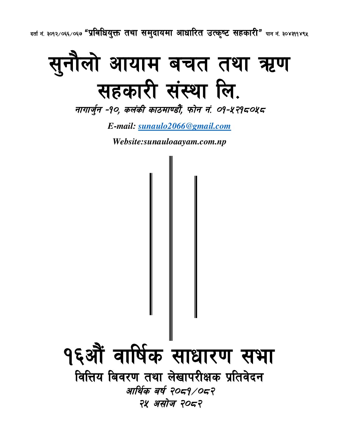 सुनाैलाे आयाम बचत तथा ऋण सहकारी संस्था लि.